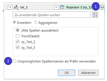 Tipp: Entfernen Sie den Haken bei „Ursprünglichen Spaltennamen als Präfix verwenden“, um leserliche Spaltennamen zu erhalten.